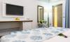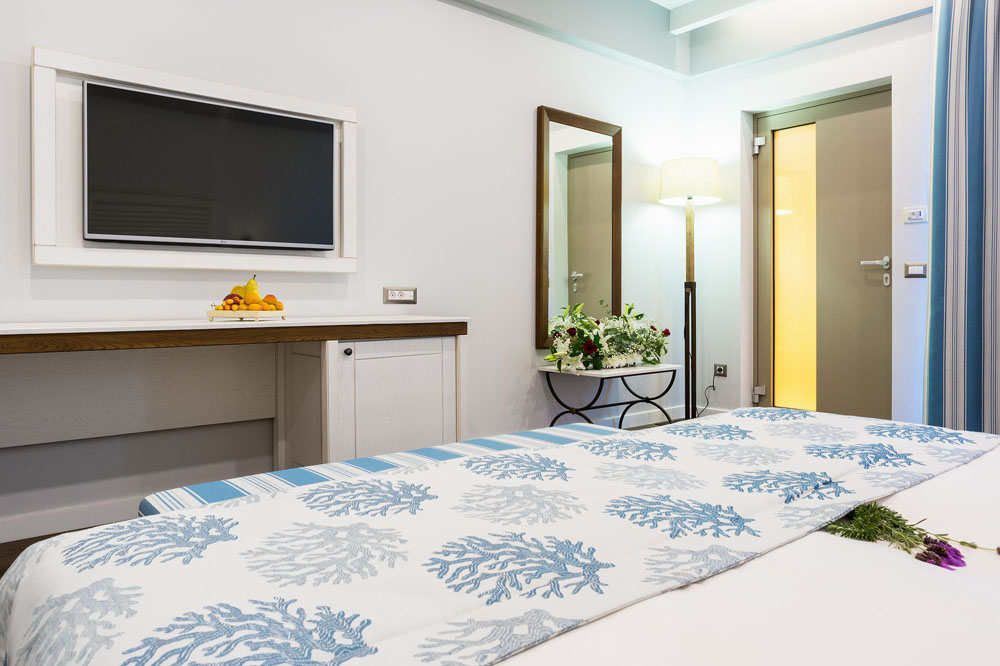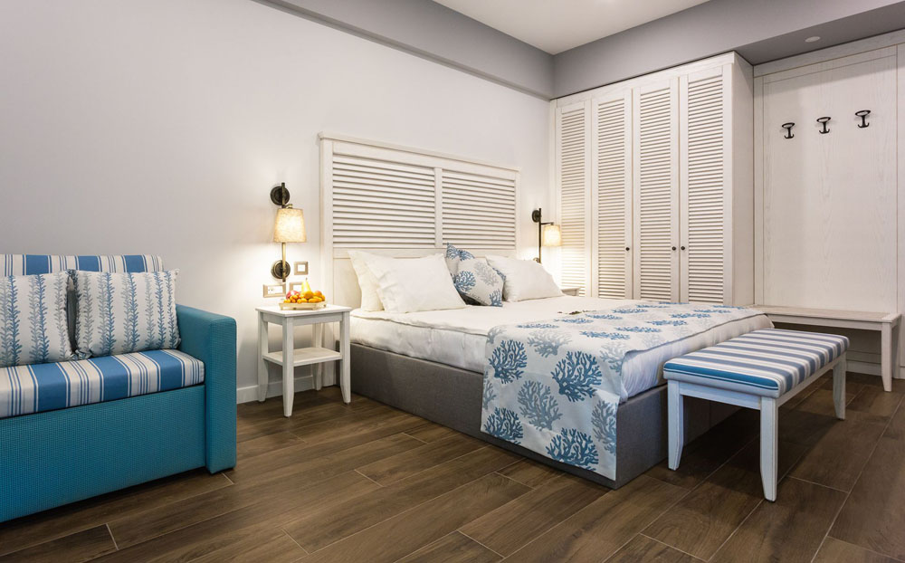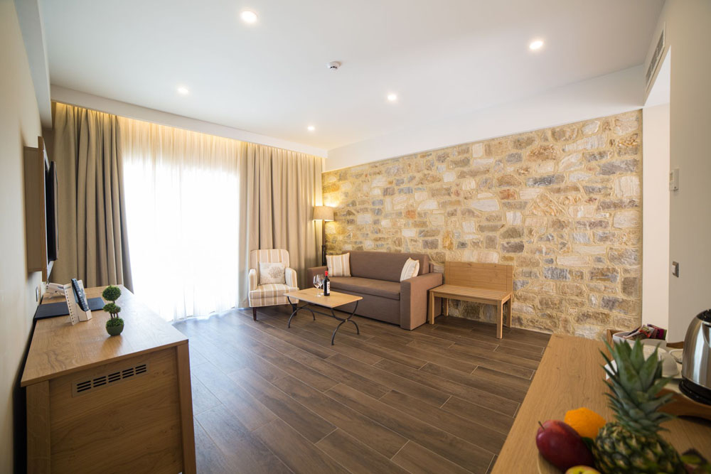 The design based on the allowed construction of approximately 8500m2, had to meet the requirements of the owner. Restrictions were placed on the surface of the field that could be built but also on the shape of the buildings, due to the archeological site, the streams and the beach. The owner wanted to operate with the aim of maximum capacity, meeting 5 * specifications but also the implementation of spaces for entertainment, with emphasis on creating pleasant and spacious rooms with unobstructed sea views.