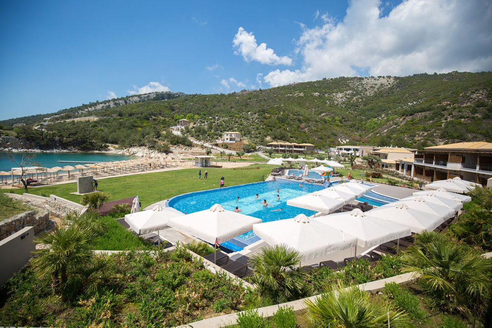 Thassos needed a high-end unit because while it has a remarkable accommodation infrastructure, the 5 * hotels that operated on the island and could differentiate the offered product were only three with a total capacity of 586 beds. The budget of 11,000,000 euros for the construction of the unit, taking into account the extensive needs of work in the surrounding area, streams and archeological site, was another challenge for the planning and licensing team.